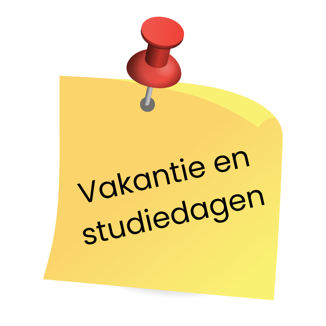 De vakantie- en studiedagen vindt u in het volgende overzicht.